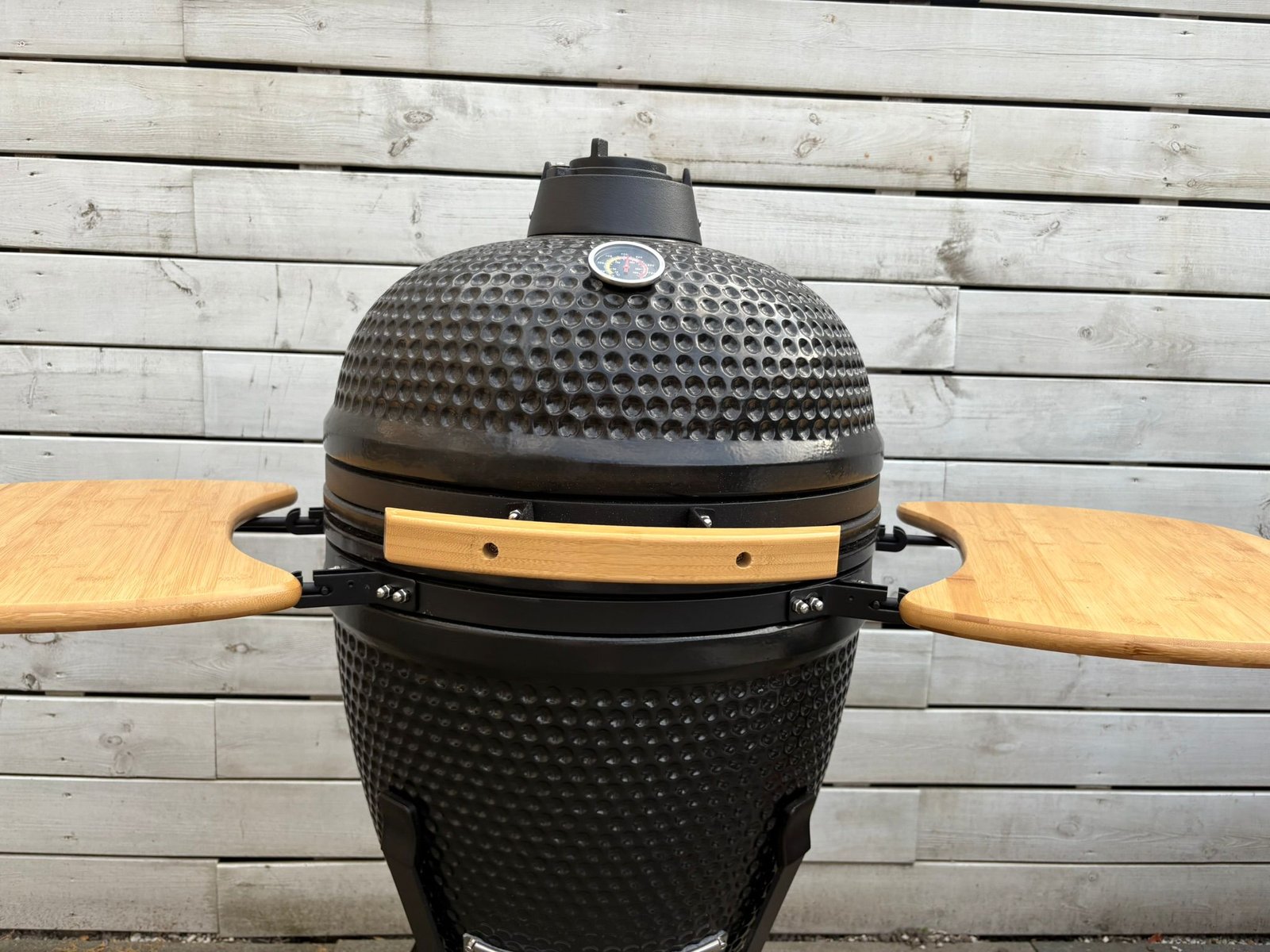 Wind kan extra zuurstof duwen, waardoor je temperatuur stijgt. Zet kamado’s bij harde wind in beschutting.